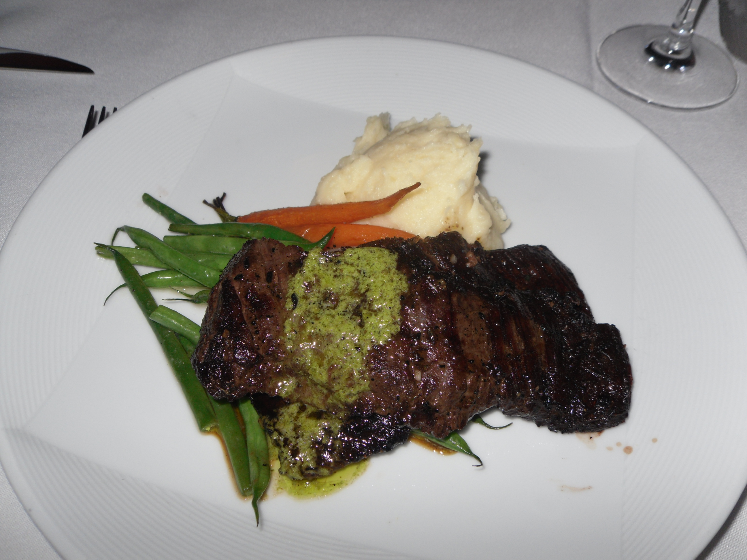 For our main course, we all ordered the grilled skirt steak. It was delectable – well made, crisped just right and the mashed potatoes with baby carrot and green bean were great complements. The steak dish also came with herb butter which added to the flavor.