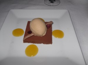 As for the dessert, this is where the View lost points for me. The chocolate red velvet bar, while in theory sounds amazing, was more of a cake-like consistency and a bit dry. I wasn’t able to discern a red velvet flavor, and the citrusy accents on the side didn’t really go with the chocolate. The best of part of the dessert was the Cafe Brulot ice cream which tasted faintly of brandy, coffee, clove and all spice.