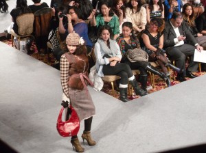 For Sunday’s 6p show, I actually got to sit and enjoy with a friend from the balcony level. It was wonderful to relax for a bit and to be able to see all the action from up high. The first designer was Janerations by Janina Stankiene, showing off couture knitwear. They were lovely with stripes and other designs, mostly outerwear in warm tones.