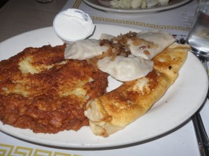 I was very happy with my own meal. It was a great assortment of Ukrainian goodies. Everything tasted wonderful and authentic. I felt like I was having a homemade meal. The potato pancake was large and thicker than ones I’ve had before but delightfully crispy. The blintz had a sweet soft white cheese inside, in a sort of crepe-like shell and very tasty. And the pierogis are kind of like dumplings and filled with meat.