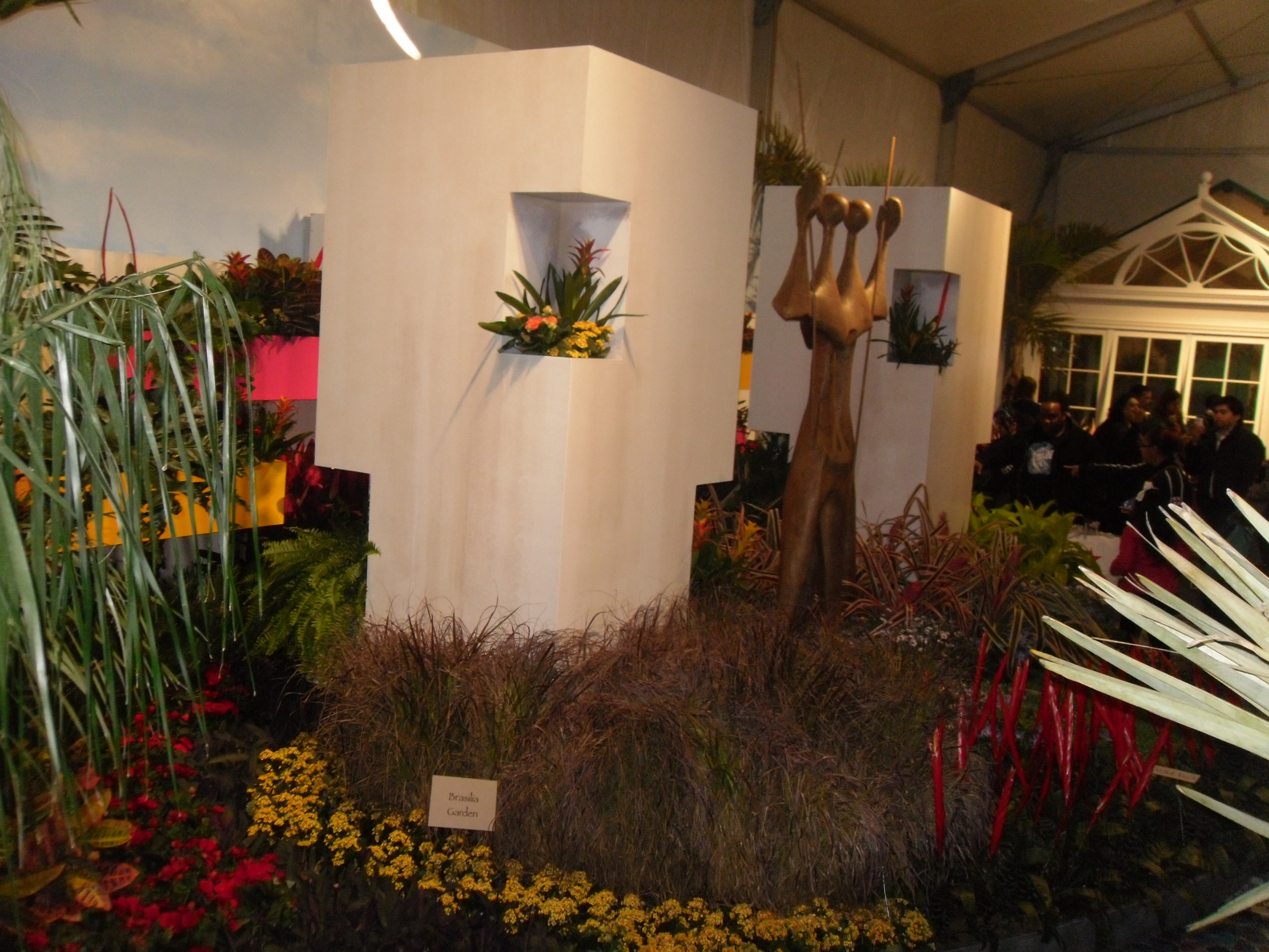 There is an beautiful display of lush plants and colorful blooms that are reminiscent of tropical rainforest and urban gardens. The Flower Show features six separate gardens that come together on a whimsical, winding cobblestone path. Each garden depicts a different type of Brazilian horticulture, from old-world gardens with towering palm trees to cool urban rooftop gardens.