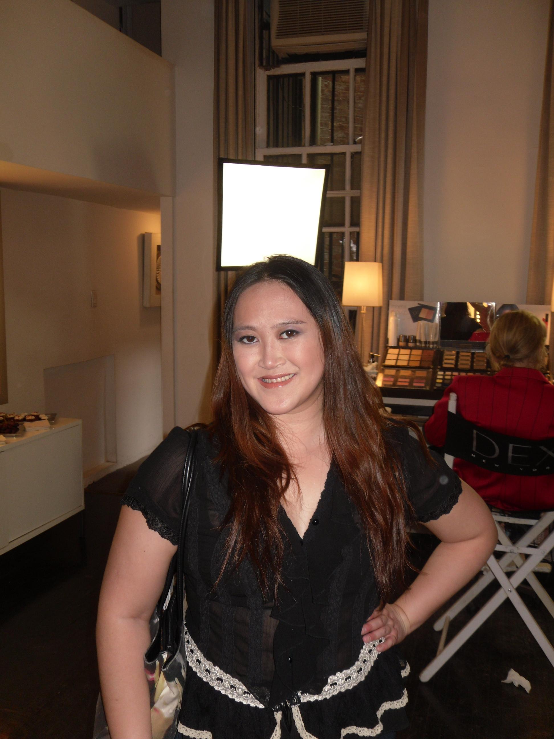 Then I headed to Dex Beauty for a Baubles and Garden Party- Stella & Dot jewelry trunk show; strawberries and grapes; and amazing red velvet cupcakes. I also enjoyed makeup application by John Henry (National Makeup Artist) with Dex’s gorgeous line of eye shadows with names of Manhattan/Queens locales. He used Riverside and Harlem Nights on me (purple hues). John Henry was such an expert at what he does and so fun-lovable.