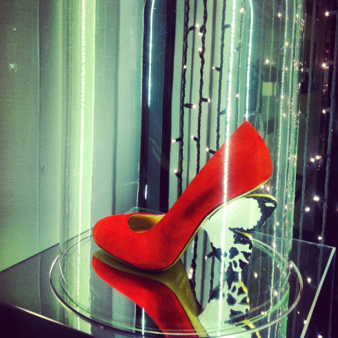 Some of my other favorites were shoes was a gorgeous red number by Tom Ford– Unusually shaped heels with velvet red straps that tie in a bow in the back.