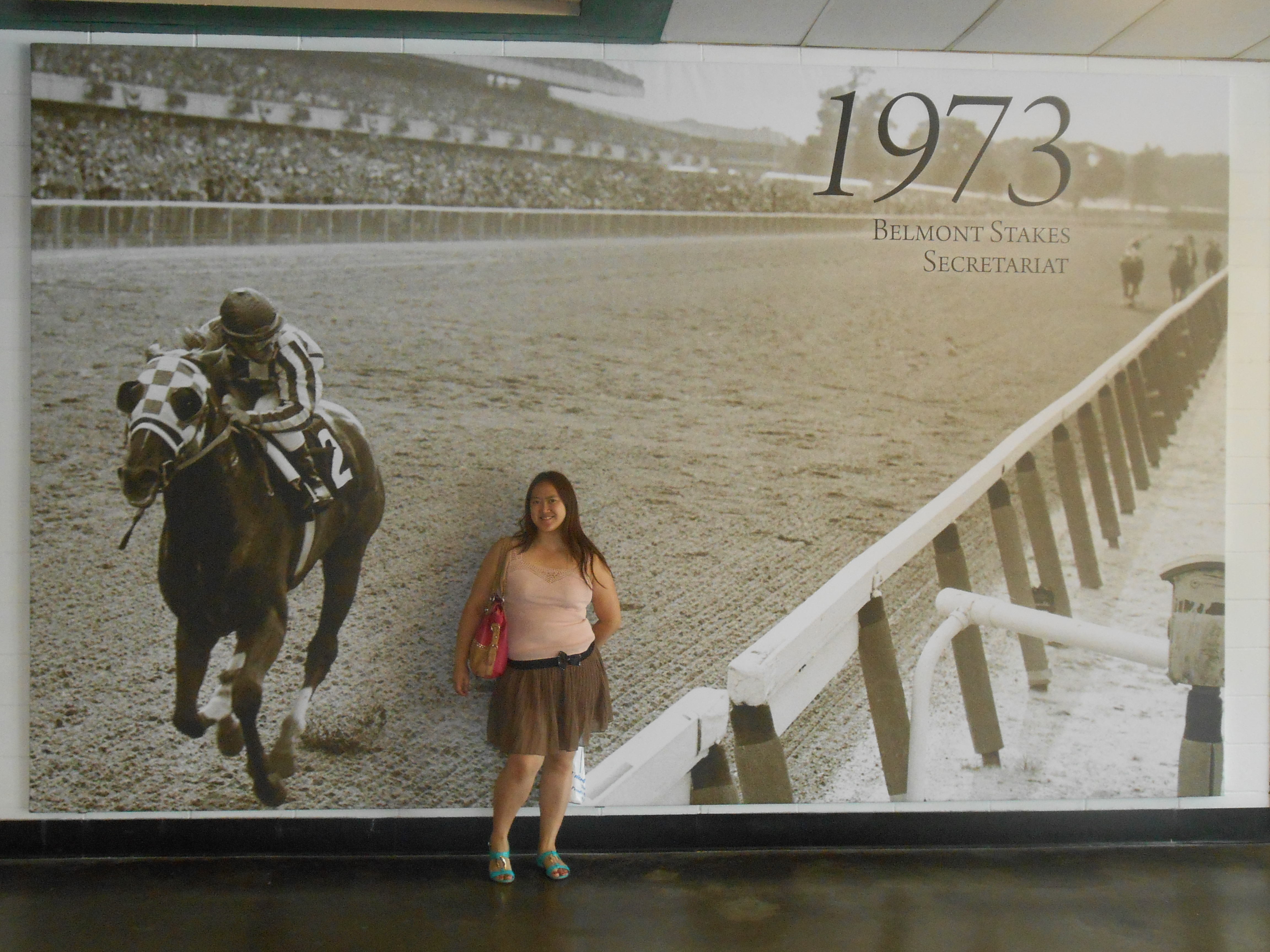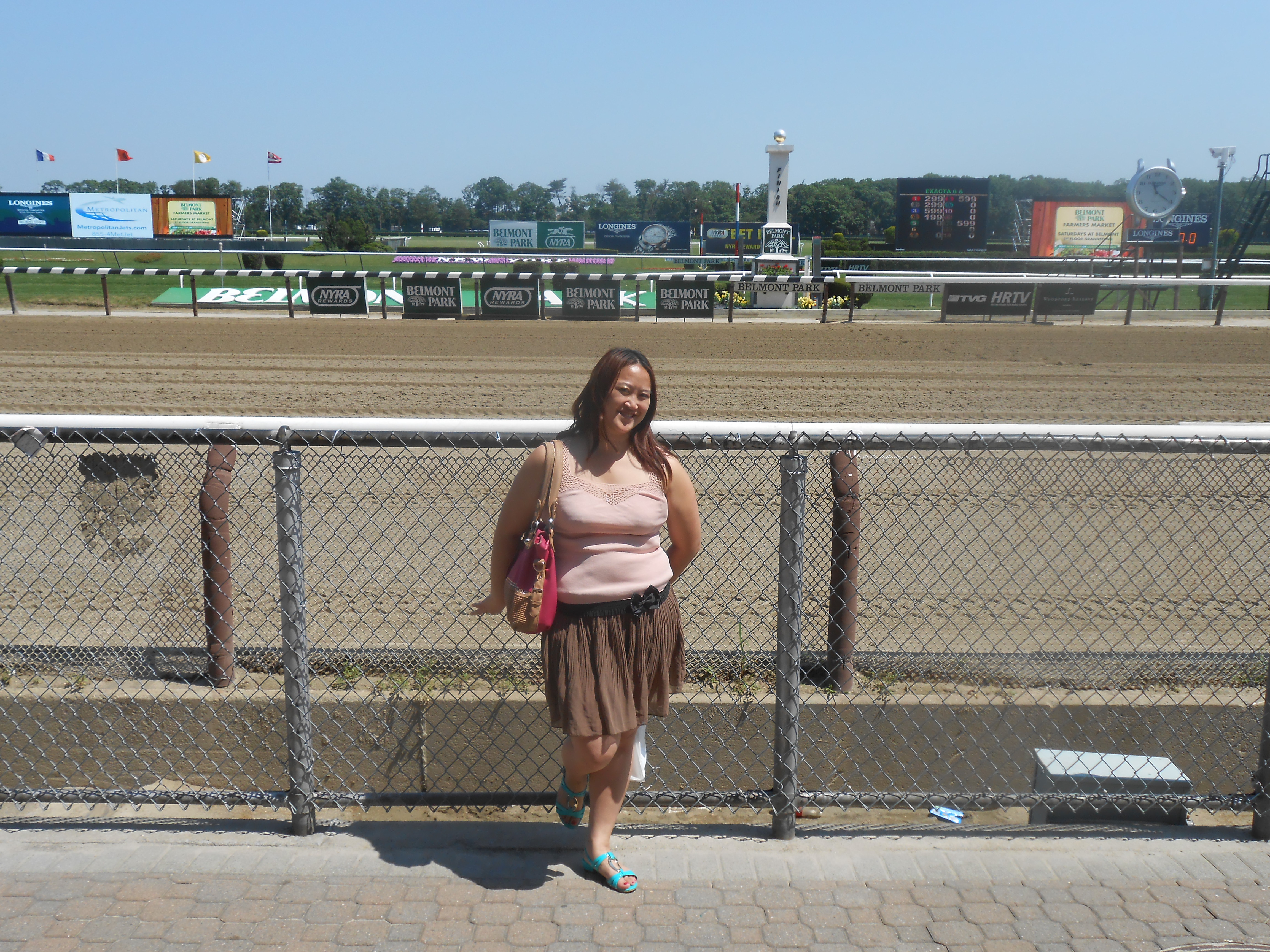 This past weekend I had the opportunity to spend the day at Belmont Race Tracks to see some premium horse racing. We had Clubhouse seats and had the option to be up in the bleachers or down right by the dirt race track, which turned out to be the better option- Closer to the action.