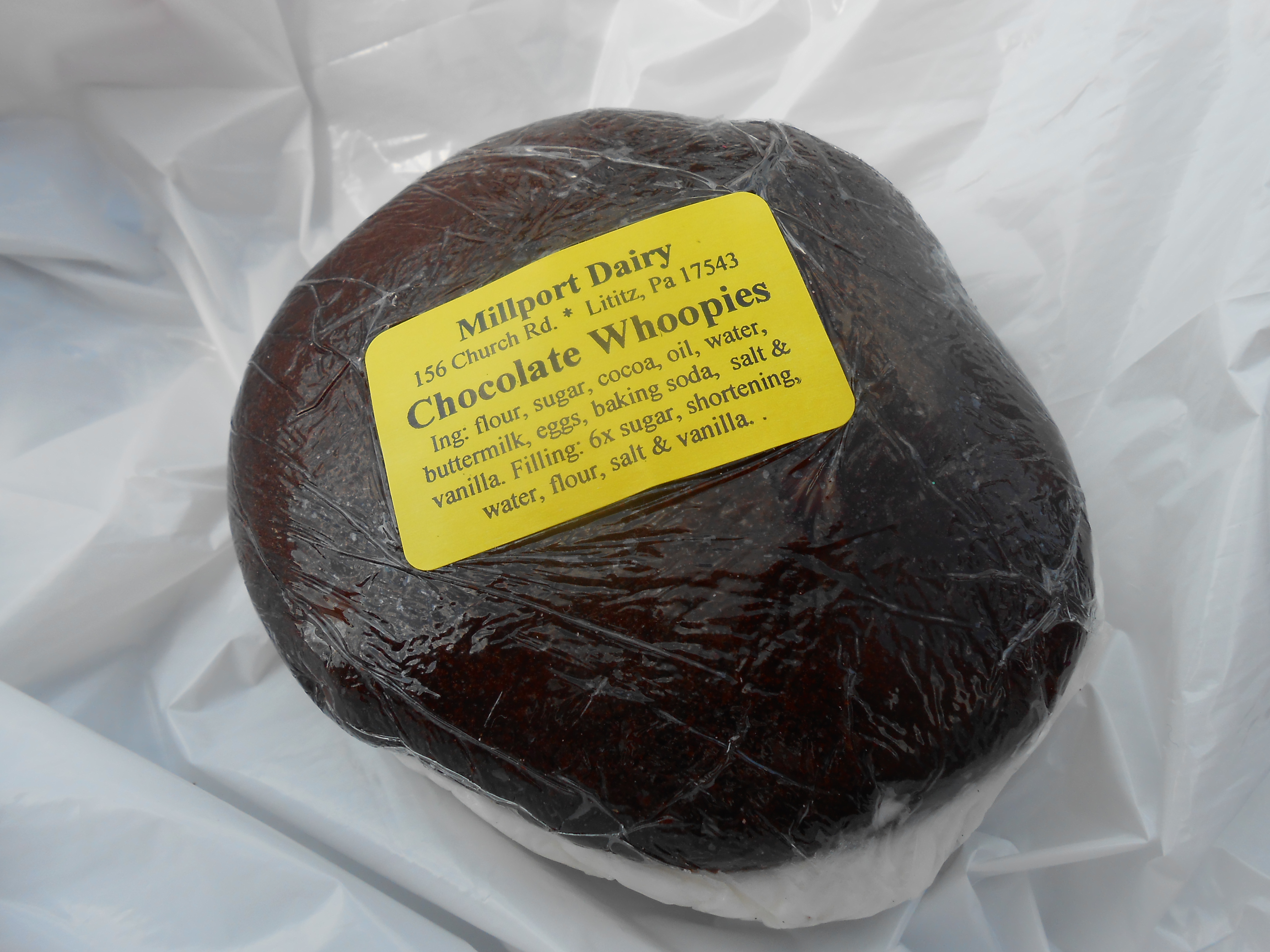 Inside we also found a stand with Millport Dairy products from Pennsylvania, such as cheeses, meat, sausage, pie, whoopie pies, and breads. My friend purchased the sweet jerky which was quite tasty, and I bought a huge chocolate whoopie pie which was simply delectable, perfectly moist, chocolatey with creamy sweet vanilla center.