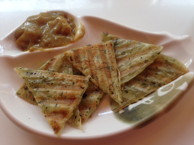 Today, I had the chance to enjoy a cute little place called Just Sweet Cafe. It’s mostly desserts, some nice bubble tea options and a few appetizer and noodle/rice dish options. There wasn’t too much to choose from for the savory treats, so I just ordered the green onion pancake with curry. The pancake tasty- Very thin and extremely crispy- and not as oily as usually so that was a plus. Also the curry had a nice flavor to it and wasn’t at all spicy. It came with potatoes which was yummy.