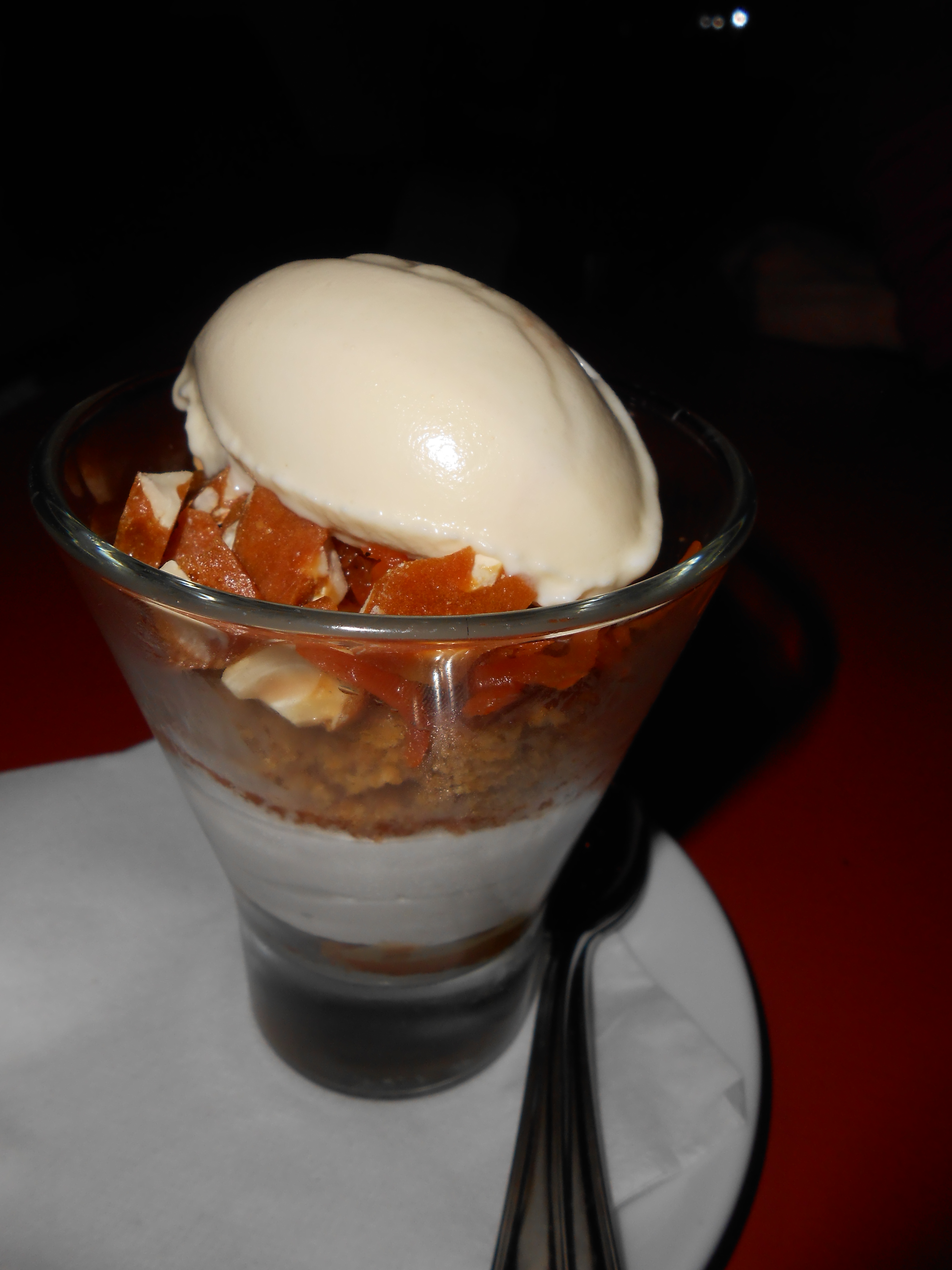 Then there was a pudding-like dessert with a blend of pure toffee pieces, expresso and vanilla. The last dessert was different and interesting. It consisted of gelatin, blueberries and pieces of meringue.