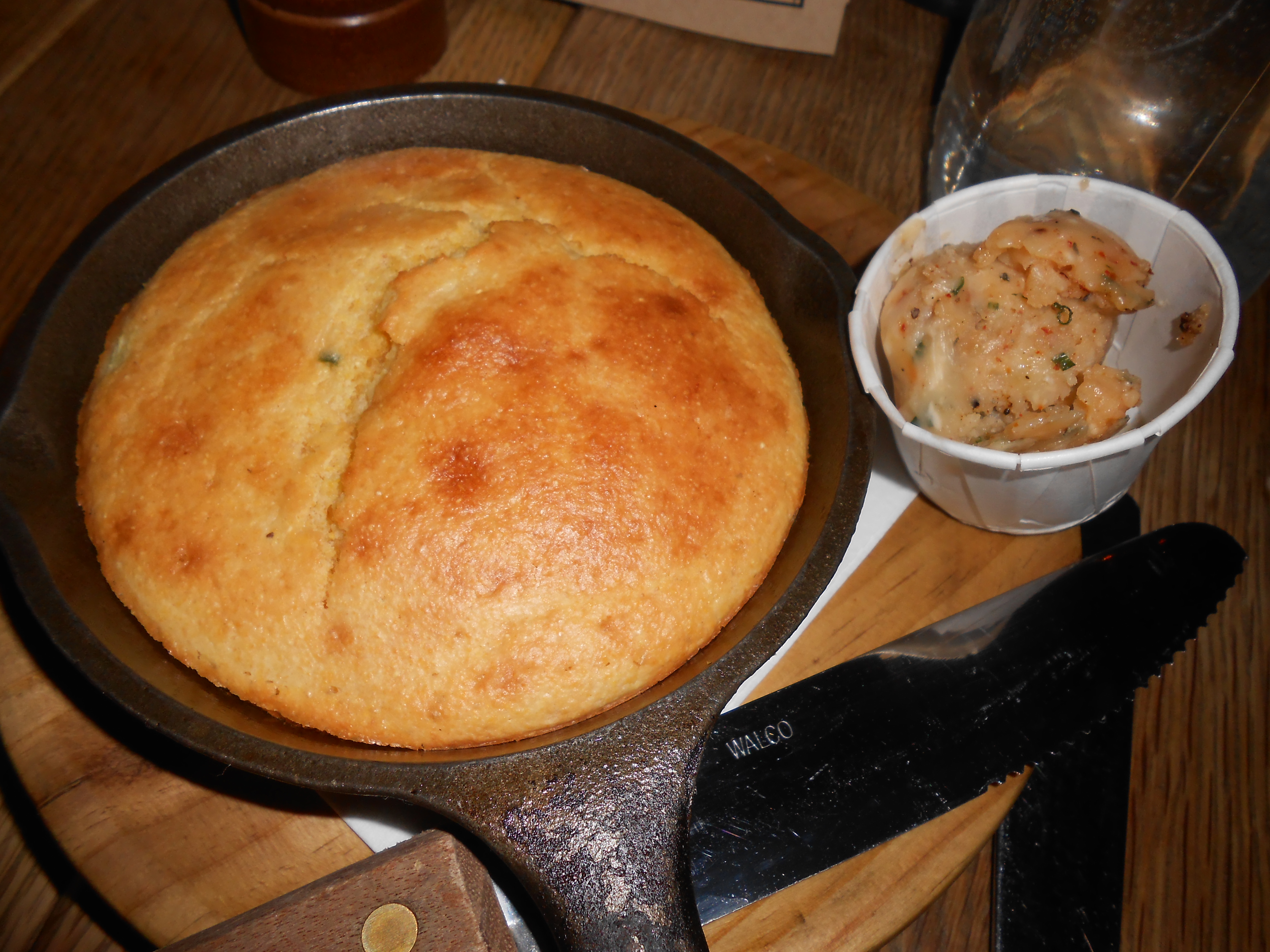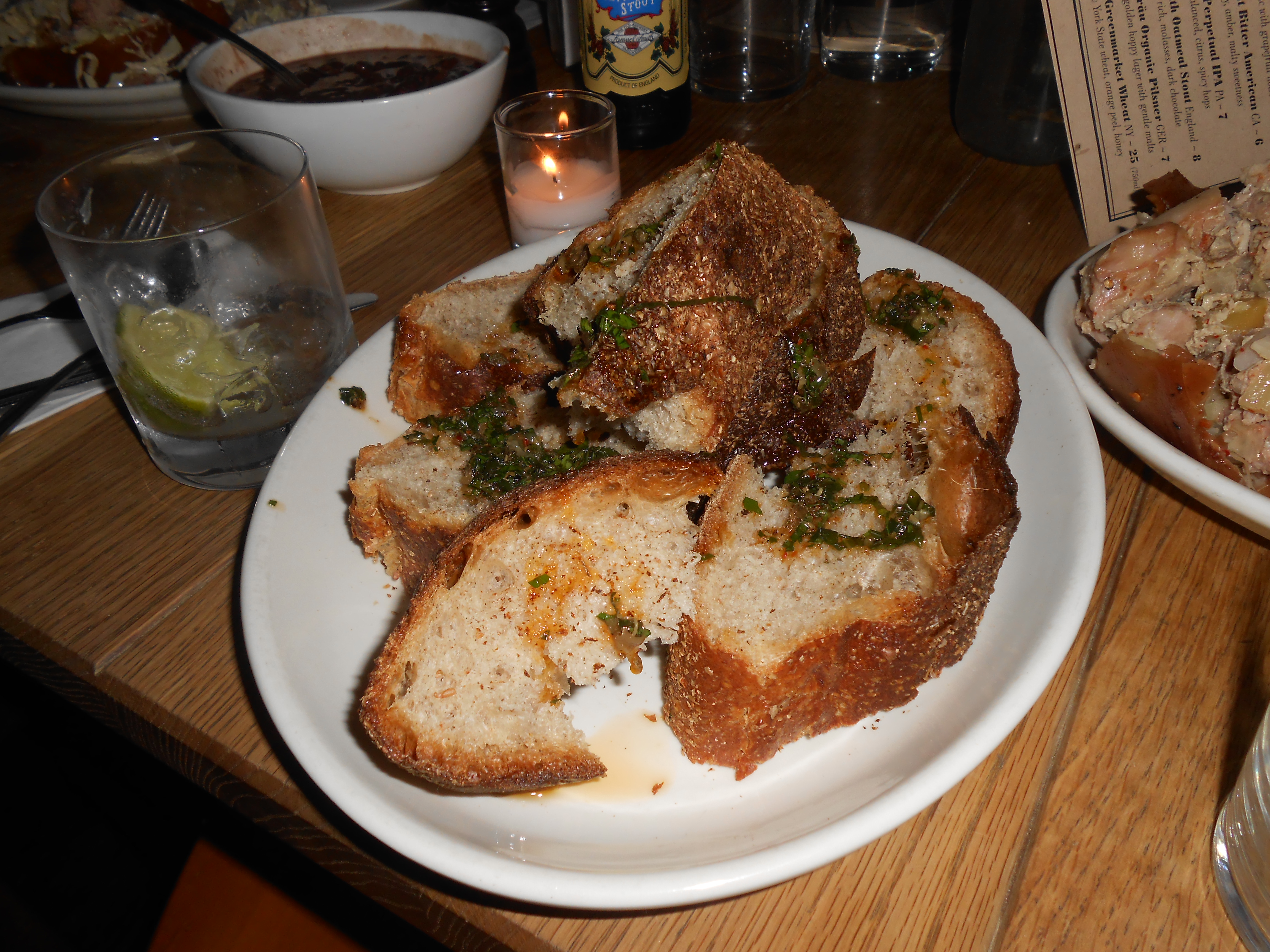 The meal started off with an assortment of breads: One sourdough with little pieces of ham in it, which was okay. I didn’t have a ton of flavor but I liked the green peas and ham that came with it. There was also muffin top bread, which was nicely moist and it came with yummy seasoned butter.
