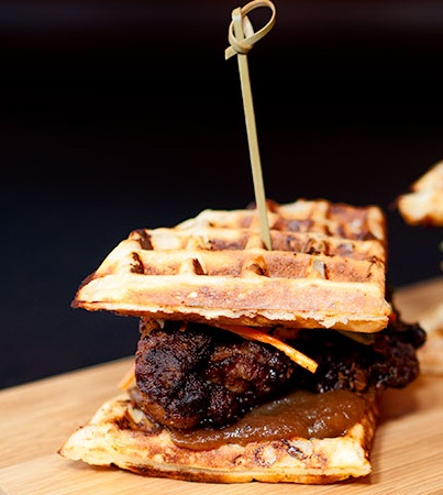 Then there were mini capellini cakes with vodka sauce that was fried to perfection and extremely crispy. They tasted a little bit like potato. We also had fresh mozzarella, tomato and bread crumb on skewers, which were light and refreshing. Next came the warm farro (a type of grain) salad with wonderfully tasting pesto sauce. After that was another favorite of mine: Zucchini fries. They were hot and fresh out of the oven, with well seasoned breading and a light dusting of parmesan sauce.