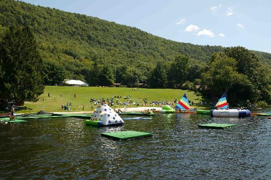 I went up on the floating trampoline and managed to climb all the way to the top of the slide, thanks to a really sweet guy, and we slid down together, holding hands. It was a bit scary, since it was so high up but totally worth it.