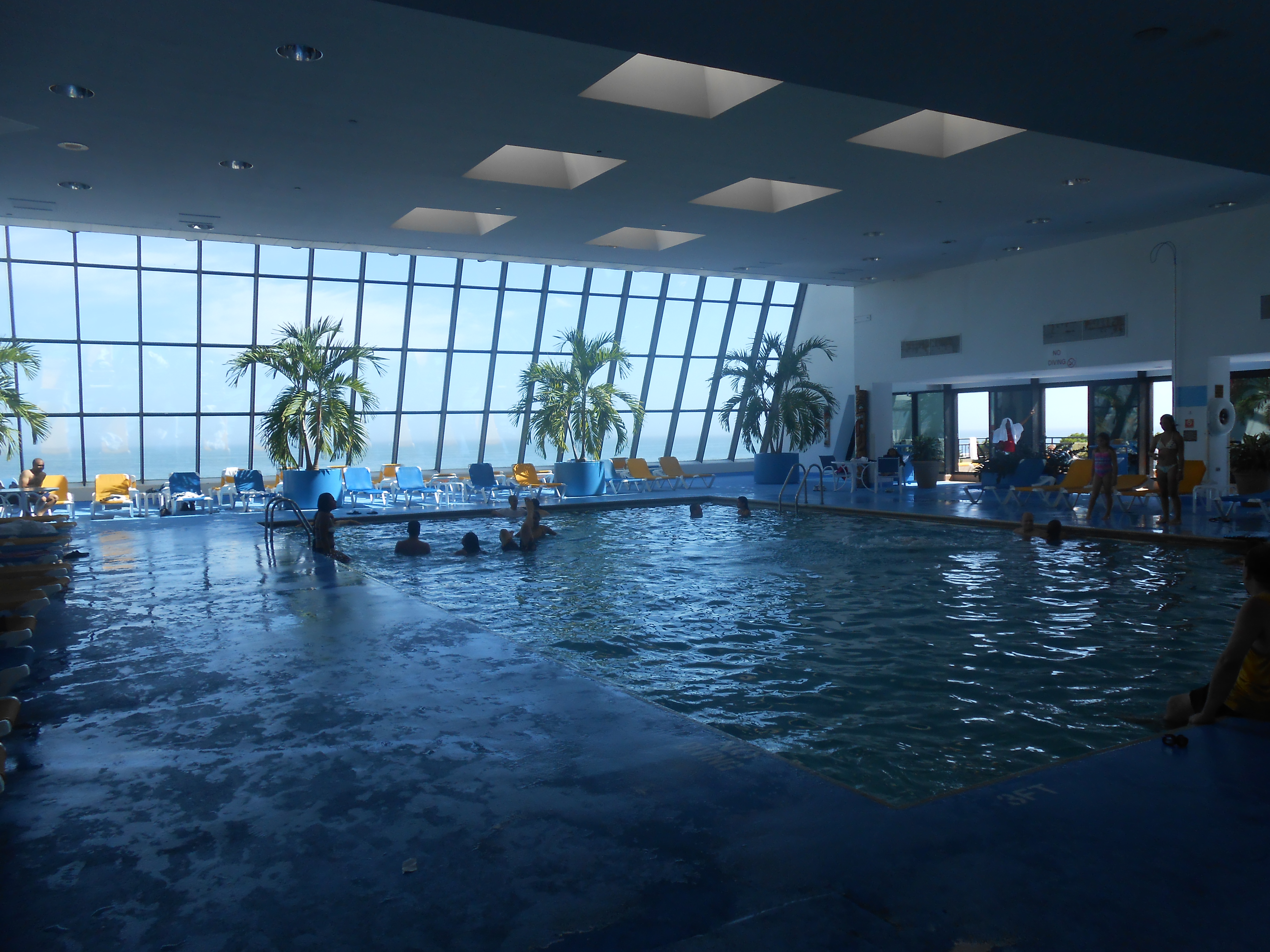 First, I met some really awesome folks and we checked out the outdoor pools, which had a spraying area and also different massage water jets etc. There was also a nice bubbling jacuzzi. Then we checked out one of the pools inside which was right by the bar and had stools set up along side it. I don’t drink so I asked if the free drinks included any non alcoholic drinks. At first they said no, but then allowed me to order soda so that was really nice.